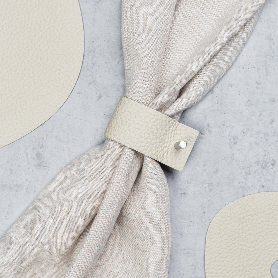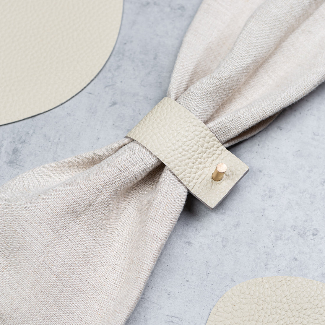 Kožené krúžky na servítky – sada 4 ks – slonovinová farba | YEVA.sk