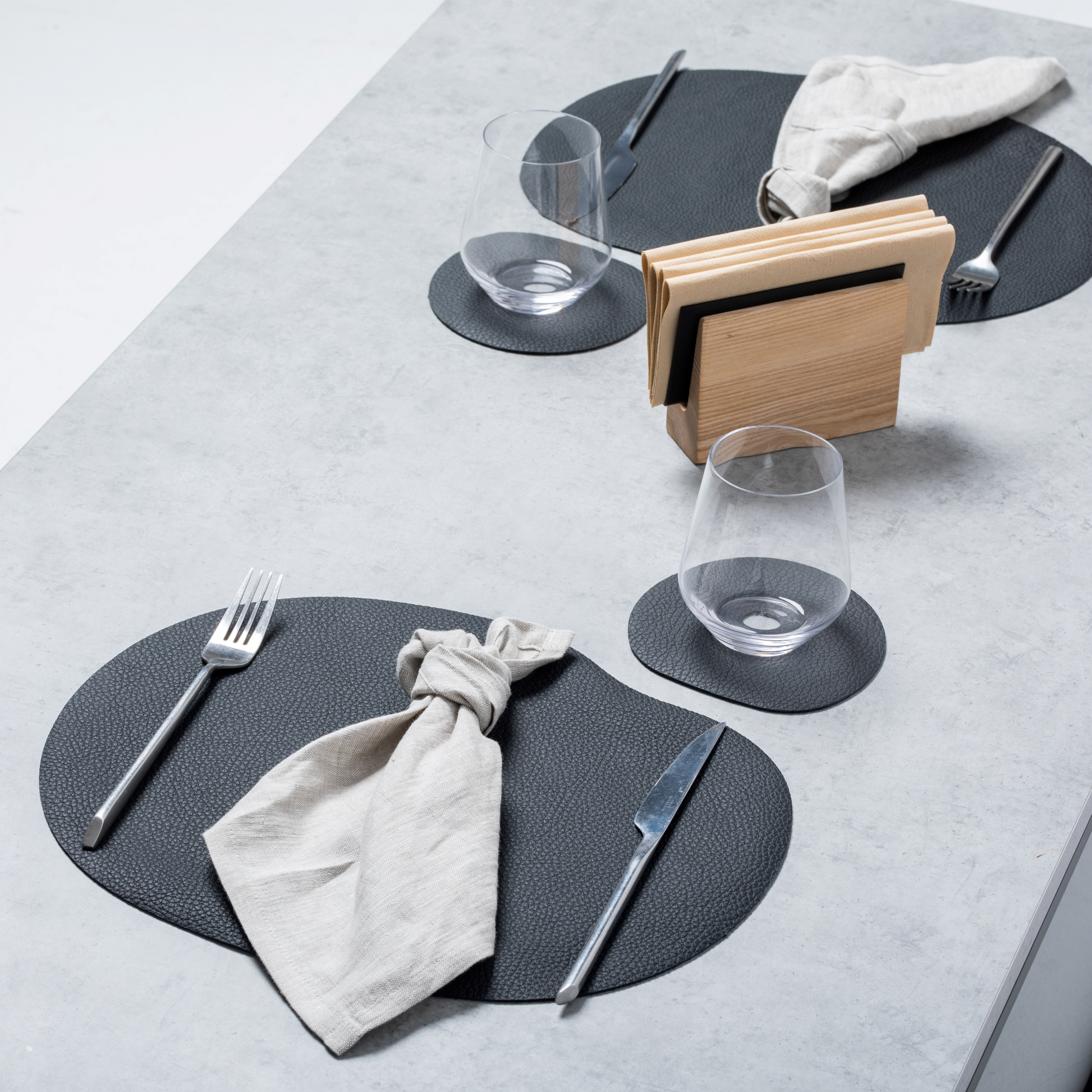 Kožené prestieranie a podšálky – čierna farba | YEVA.sk